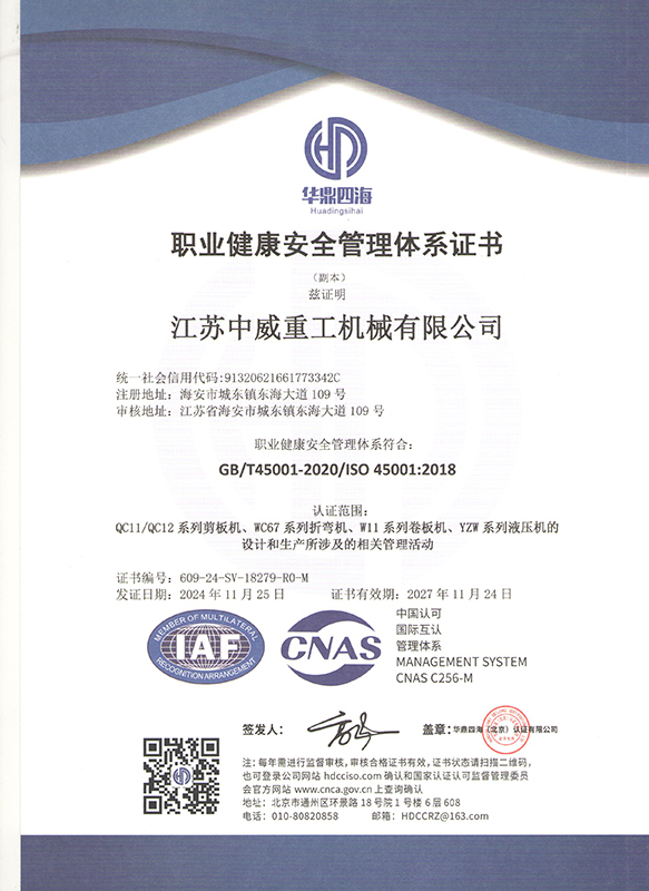 职业健康安全管理体系证书